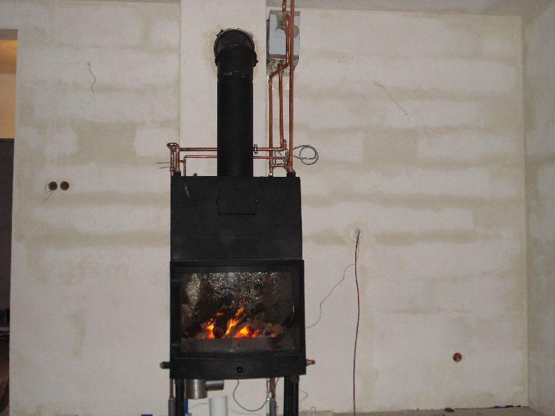 Należy pamiętać, że w miejscu, w którym planujemy zbudować kominek należy doprowadzić dwie rury: pierwszą – z bieżącą wodą czerpaną z instalacji sanitarnej i drugą, która odprowadzać będziemy gorącą wodę z wężownicy do kanalizacji. Średnice wspomnianych rur są takie same jak w domowej instalacji sanitarnej. W żadnym miejscu nie nie wolno montować dodatkowych zaworów odcinających – jedyny zawór jaki montujemy to zawór zabezpieczenia termicznego z kapilarą, którą wsuwamy w przygotowane miejsce w wymienniku cieplnym wkładu kominkowego.